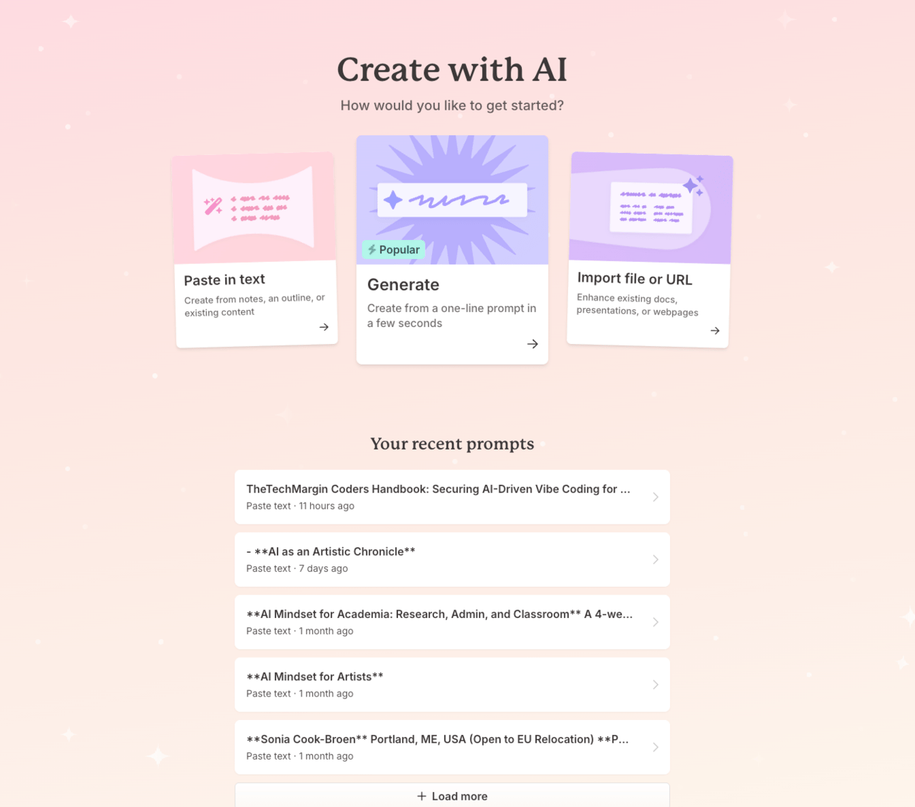 Gamma’s user friendly interface invites you to create!